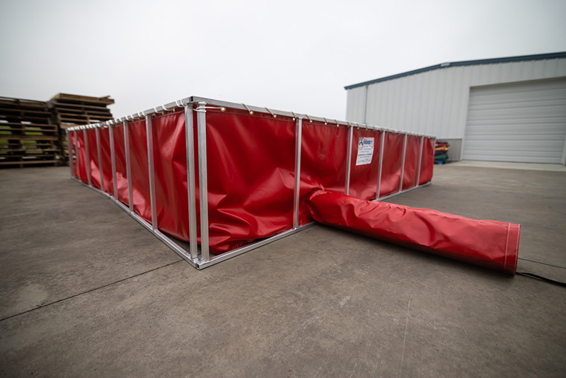 Husky® Drain Sleeves are now available in 14" diameter and 18" diameter for quick draining. If you purchase two Husky® Folding Frame Tanks for the purpose of connecting them we can build a 14" or 18" Drain Connector.